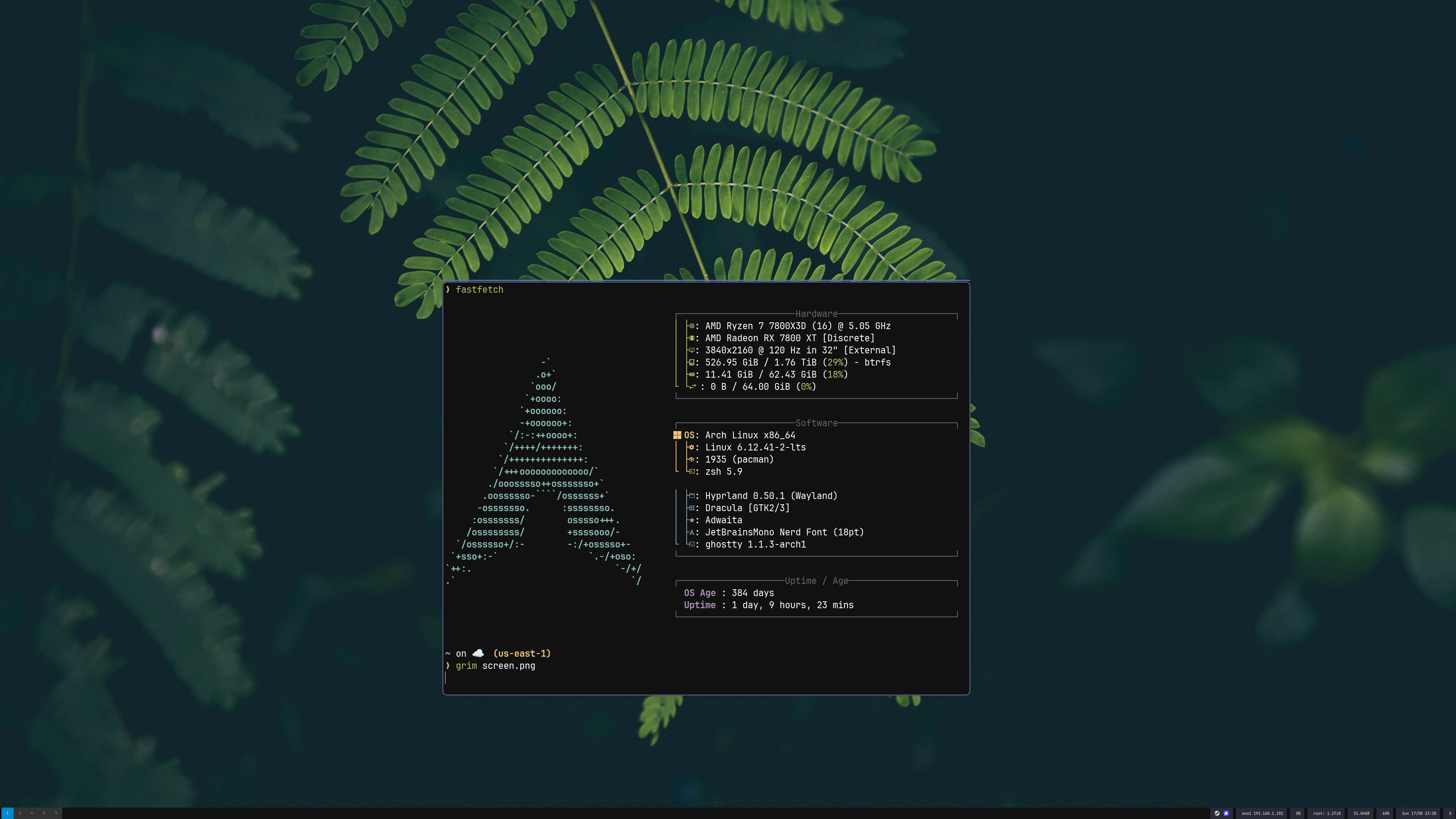 System specs: Arch Linux, AMD Radeon RX 7800 XT, 4K display with fractional scaling